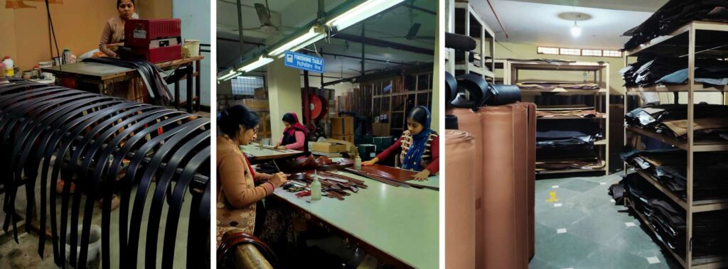 - using recycled or reconstituted leather to improve material efficiency